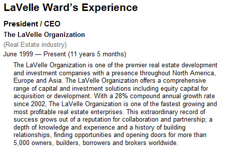 I thought it might be helpful to review the LaVelle Ward LinkedIn profile and see how it actually relates to reality..