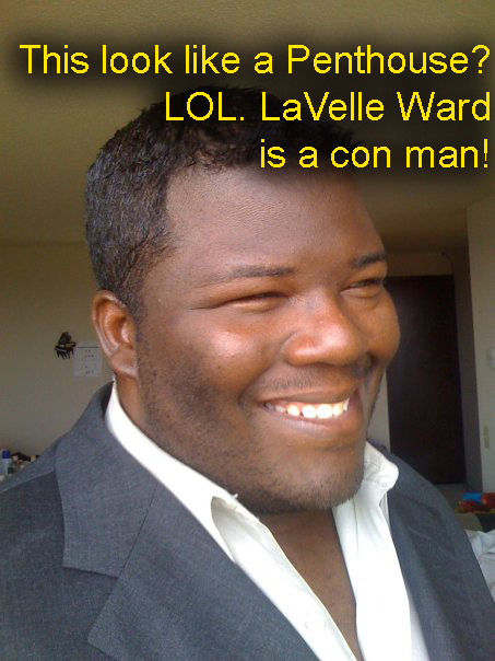 Lavelle Ward (AKA Marcus Lavelle Ward) is indeed a scam-artist. He lives in University Park, Illinois, in an assisted-living apartment facility WITH HIS MOTHER and his young son. He does not live in a penthouse In Chicago. He lives on the 9th floor. The apartment is a complete pig-sty. Filthy and smelly, and definately not safe for anyone who lives there, especially his child. It is a complete mess, and I am quite certain that if Child Protective Services were to be called on him (I have taken care of that) that his son will be taken away immediately and placed in a safe, clean environment. He is always looking over his shoulder, because he knows that very soon his gig will be up! I have contacted the FBI myself, and they launched a full-blown inverstigation long ago because there have been so many complaints about him from companies, and people who have personally had the displeasure of dealing with him on a personal level. He is a sick individual that needs to be locked up! If he comes your way, RUN THE OTHER WAY!! He is about to go down for his years of forgery, fraud and stealing. And I am going to laugh so hard tears roll down my cheeks when it happens!